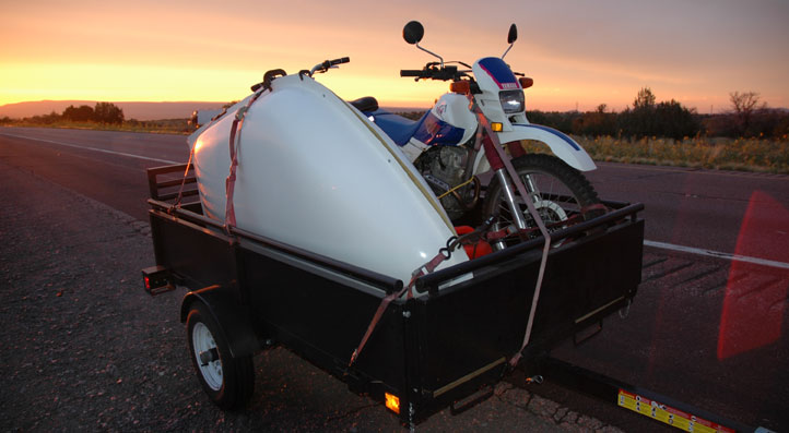 | Shipping: You probably have already figured out that getting this from California to you will be your first hurtle. Pick it up in Salinas You are encouraged to make an appointment and pick up your Streamliner kit in Salinas. It is made with a flat section along the bottom so it stands up like a motorcycle in a pickup or on a motorcycle trailer. Crate and ship You may pay extra to have it crated and shipped. There are craters in Salinas. I can deliver, sort of I sometimes travel cross country... usually on I-40 from Carmel to Grand Junction, Colorado. I would be happy to put it on my trailer and meet you along the way. Several customers work together The most economical way to get these shipped would be for several customers to band together and have a number of kits nested together and shipped to one common location. I will do my best to coordinate this for you. | |||||||||||||||||||||||