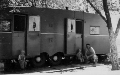 | | Arriving home without a scratch in Sept, 1945, Clyde and Doris ordered a "Streamlite" trailer to be made for them at the Chicago plant. They towed it to Rantoul where many, because of the post war housing shortages, were living in railroad cars and packing crates. The trailer was small, but it was theirs. It satisfied his need for self-sufficiency. Eventually, they got military housing at Chapman Courts where, in 1949, Arlene was born. As we children grew up, we each got Schwinn bicycles for our birthdays. | | | | |