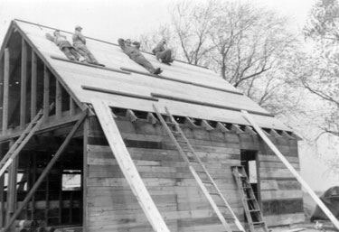 | My father had a "nose for good deals." In 1953, he heard about some 1880s one-room schoolhouses that were being auctioned off near Fisher, Illinois. He bought one for $500 and for the next four years, the family converted the Gulick School into our home. Now in his mid 30s, Clyde was on a roll. | | In 1955, he bought and we completely dismantled an 1870's mansion for its wood and roofing shingles. There was so much wood left over that we had to build a storage barn to hold it all. It turned out that this was only the first of many piles of wood that Clyde would leave in his wake as he moved on through life. | |