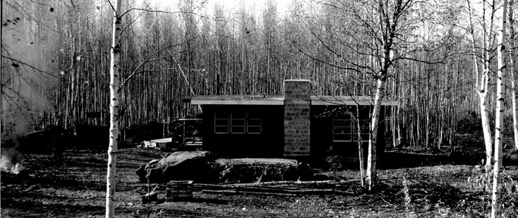 | In 1957, he was transferred to Elmendorf, AFB, Anchorage, Alaska where he heard about some 5 acre "Home-sites" that had not been proven up on. All we had to do was dig a well, build a house and it would be ours. So that is what we did. Of course, it was surrounded by piles of unused wood covered under tarps. He sold it that way. | |