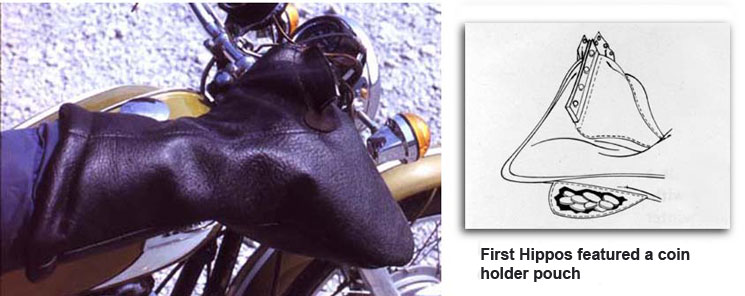 | The first Hippos had a “coin pouch” inside the left Hippo to make it easy to pay tolls. Only a motorcyclist would think of this, right? We figured out how to fit all motorcycles and to use Velcro to seal up all the places air might come in. Lttle by little, the Hippo design was refined. By the winter of 1973-4 we were ready to introduce them. | ||||||||||||||||||||||||||||||||||||||||||||||||||||||||||