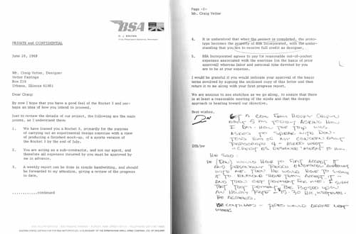 | That brochure won the Graphics Arts award of the year by the Western Graphic Arts Association, and appeared 35 years later in the Guggenheim Museum’s Book for The Art of The Motorcycle Exhibition. It was so much appreciated by the BSA Group that JoMo was reimbursed for its total cost of $32,000, which was my entire communications budget for the year. It was used nationally in the US and was adopted world-wide for two years. Triumph was becoming the big bike of choice in the western US among Honda dealers. We needed a brochure to match the ones being produced by Honda because Honda dealers had high floor traffic. We wanted Triumph dealers to have the best brochures, should they decide to take on Honda. It worked. Jack McCormack, President of Honda posted in his office my letter to Triumph dealers telling them we favored Honda as a second line. Those were the honeymoon days! | |