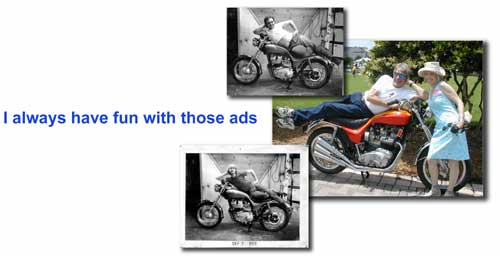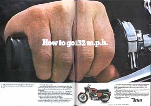 | Don answers: I worked with a very creative guy by the name of Rick McBride from California to do the BSA ads. McBride had done work for Pete Colman. But, when Thornton came I was forced to hire a national ad firm in New York to handle all of the company’s adverting. It was the new agency that came up with the girly ads. It was a bad experience, but the photo shoots were fun and I tried to keep an open mind. It was my last assignment on behalf of BSA marketing, having been reassigned as vice president of national BSA sales. Thornton wanted his people to handle advertising and promotion, he knew I was on my way out, but he didn’t know that I also knew the end was near as a matter of personal choice. | |||||||||||||||||||||||||||||||
