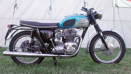 | It is not generally known that in 1965 the first of the new triples looked like a normal Triumph. This early prototype was on display at Beezumph in 2003. Check out the nice, sandcast cylinders and heads. Had this machine been brought into the US, American riders would have been very happy. For some reason, management went to outside, "professional designers". | |||||||||||||||||||||||||||||||||||||||||||