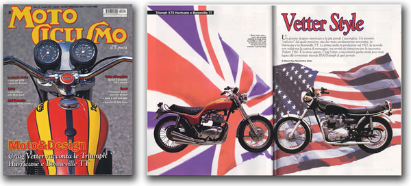 ![]() | December 2009: New Hurricane reading... Above: Italy's beautiful MotoCiclismo with a very nice story about my Hurricane and Bonneville TT designs for Triumph Left: Motorcycle Classics current issue addressing Hurricane myths Below: A masterpiece from Whitestar Publishers of Italy (in English) that belongs on everybody's coffee table | ||||||||||||||||||||||||||||||||||||||||||