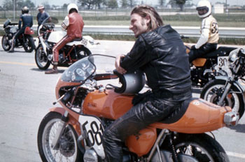 ![]() | I assumed that road racers knew "secrets" that I did not know. To begin with I bought a used Aermacchi 250 road racer thru Cycle News and a brand new Yamaha YZ250 air cooled motocross engine from Yamaha and put them together. I trucked it to Daytona, practised for a few minutes and placed 5th in the Amateur Class. I had never been on a track before. This was fun. | |||||||||||||||||||||||||||||||||||||||||||||||