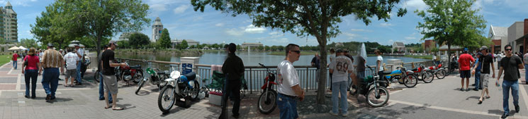 | Some 350 motorcycles were arranged around the circular lake of the World Golf Village | ||||||||||||||||||||||||||||||