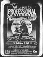 | Jackie reported: At Signal Hill we tied for the 2nd fastest time of the day at 59.27 mph, Henry Hester was given the second place trophy due to the fact his first run time was faster than ours. The winner went 59.92 mph. At Akron we took second place outright, though if CBS had not changed the rules midstream we would have been the winner. With all that being said, we were the Overall World Skatecar Champion in 1978. | ||||||||||||||||||||||||||||