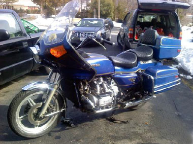| I live in north VA. I was looking for a used Gold Wing 1996 thru 2000. My son was going to school in North Carolina by a Honda shop. He stopped in and looked at some bikes, started talking to sales person who remembered he had an older bike in the basement. So there it was: a 1978 Gold Wing with a full Vetter fairing, am-fm cassett deck, cig. lighter, saddle bags, trunk in good shape. Its a 1978 motorcycle with a 1980 Vetter fairing kit. I have owned it for 5 years. I have literally fallen in love with this bike. | ||||||||||||||||||||||||||||||||||