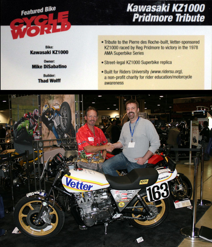 | 2009: Surprise! It certainly looks familiar to me. The original Vetter Superbike belongs to Brian O' Shea who collects race bikes like this. | ||||||||||||||||||||||||||||||||||