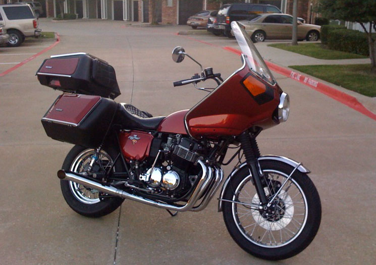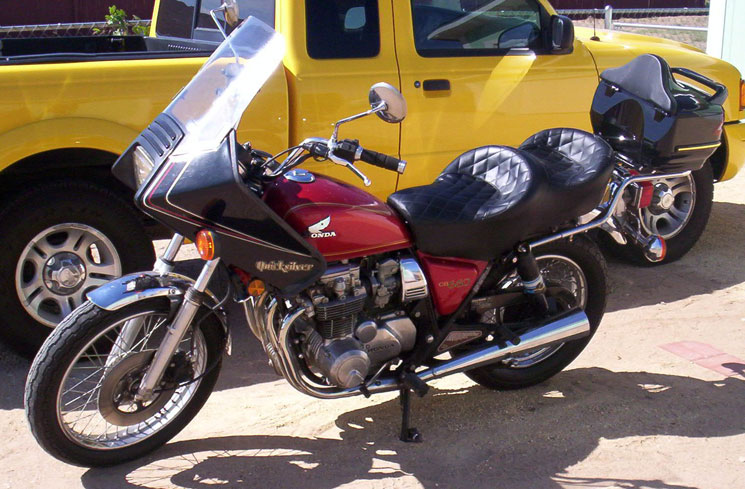 | Craig & Carol I bought a 1972 Honda CB-750 in California when I was in the Air Force in 1972. I rode it for many years and afer I got married in Utah I put a black Windjammer SS fairing on it on 1978. I ended up moving into the corporate world and have moved from California to Utah to North Carolina to Puerto Rico to North Carolina to Texas to Missouri and finally back to Texas. I stopped riding the bike in 1984 while I was in North Carolina the second time. The engine had siezed and I had neither the time nor the money to put it back on the road (raising 5 kids will do it to you). After I moved to Dallas in 1985 I decided to get the bike running again and took it to a well known mechanic in the area. We decided he would rebuild the engine and I would take care of the rest. He put a 900 Kit into it along with a Yoshimura RT cam. He did a great job on the rebuild but took some time getttng it done. I was not in any particular hurry so it wasn't a problem. I had moved to St. Louis by then and had dissasembled the bike, put all the small parts into labeled plastic bags and stored all the big items in crates. He shipped the engine to me and it went into the garage with the rest of the parts. I knew at some point on time I would get the bike back on the road, but I had nothing pushing me. I purchased some items I knew I would need (new fuel tank, new side cover,, new saddlebags, and a new tail trunk) Well, the years went by and a couple of years ago I decided it was time. I have had a real struggle job-wise since 2002 but things appear to be stable now. As I was able to save a little money I would do some work on the bike. Of course all kinds of parts had to be replaced and luckily finding them has not been too much of a problem. With Carol's help I was able to get the new Vetter parts I needed. I powdercoated much of the bike, hand cleaned all the hardware with a wire wheel, and finally got everything painted. (the original color of the bike was brown. The fairing was black. The new fuel tank was gold. The accent panels on the saddlebags were red and the panels on the tail trunk were blue. I went with a nice Candy Apple Red. The saddlebags and tail trunk mounting brackets had to be modified as they were designed for a '78 model CB-750. Granted the bike is not a new machine, but it is just what I wanted and I am very happy with the rebuild effort. I would like to thank you for your imagination, innovation, ingenuity, and entrepreneurial efforts in creating the touring bike industry. You led the way with great products that served a market no one else knew existed. As you can see, your products make the bike and I look forward to many more years of happy riding. Again, thank you for all you have done. You have enriched many lives and done much good. Best Regards, Steve Johnson | |||||||||||||||||||||||||||