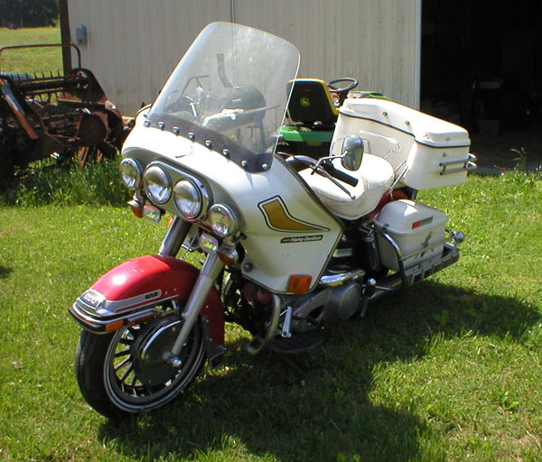 | 77 H-D Liberator Craig, Here are pics of the 77 H-D. This bike has been in a barn for the past 4-5 years and is in bad need of a good cleaning. I busted a oil line yesterday and in the process of replacing the lines, tires, and rebuilding the carb. I actually bought bike to make a chopper and everybody that sees it says leave it as is. THANKS Craig replies: This is really a nice shot of the proper interior of a Liberator... one heck of a fairing. | ![]() | ||||||||||||||||||||||||||