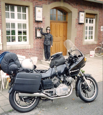| We love the vintage pics: Herb and Rona Gaudreau's 1981 Yamaha XV920RH As you can see, equipped with the Windjammer SS fairing and Krauser panniers. When I got the crate damaged motorcycle, in late 1981, the tank was dented, the headlight smashed, the side covers and rear shock missing. I removed the fairing and luggage from a Suzuki four that I was selling and fabricated fairing and luggage mounts for the Yamaha. I hope that you find the picture interesting. Herb Gaudreau | | |