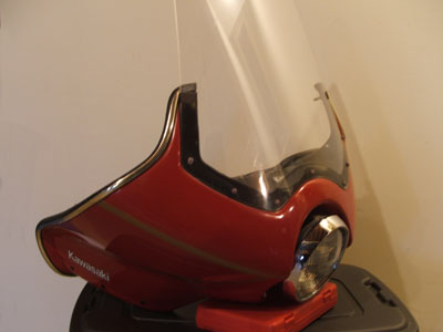 Hello Craig, I was on the web site and noticed they were documenting the Kawasaki Vetter fairings you made for Kawasaki. I have one that is number K32-101101. It is red in color and was on a KZ1000 Kawasaki. It is in supurb condition. I love the knob that raises and lowers the headlight. You are welcome to post my info on any sites you wish, along with the picture. Thanks! Tom Darling Onsted, MI. | | |