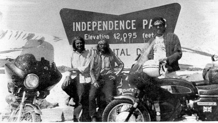 | June, 1971 Independence Pass, Colorado. On the left is the first rideable Windjammer on its first cross country ride. Scott Wallace had bought one of the last Series 1600 Phantom fairings and had it on his BSA Rocket 3. It was just a happy accident that we met: Click here for Scott's account of this time Loyal GeorgeTruesdale III - that really is his name - became head of sales. What a character! The Windjammer full of bugs on my Kawasaki 500 ended up on a BMW. Next page. | |||||||||||||||||||||||||||