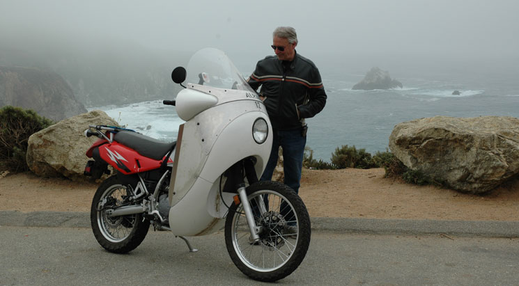 | Henry, test riding Alcan Fairing #5 on his BMW, observed that he no longer tripped the speed signs on Highway 101. Is this a radar defeating shape? Could it be the simple, rounded aluminum nose? Time will tell. | |||||||||||||||||||||||||||||||||||||||||||||||||||||||||||||||