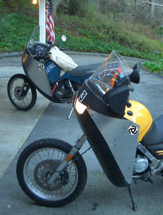 | I made seven prototypes for ourselves and friends' dual-sport bikes. But in 2007, I got sidetracked when I decided to design a fairing for maximum mileage. I figured it would be my last fairing design ever and refer to it as the "Last Vetter Fairing." The never-ending saga of my quest for fuel economy begins in "The Search for Fuel Economy." That project is temporarily stalled for lack of a suitable 14 hp powertrain. In the meantime, we have put thousands of miles on these protype fairings. Our friend, Henry, has put many more thousands of miles on the prototype fairing #5 on his BMW (Top picture). It is time to get back to work on this fairing. My 50th High School Reunion in Anchorage is coming up in the summer of 2010. It is now or never. I have not had a good name for this new fairing. But now I do: | |||||||||||||||||||||