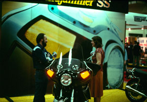 | We went on in 1977 to introduce the most refined Windjammer ever, the SS along with matching luggage. The Company continued its explosive growth. But for me, it was a time for some major changes. Carol and I got married and at the end of 1978 sold Vetter Corporation. As a result, I never had the chance to design the new fairing for Honda. March 1977: Ed Rutkowske and Carol - the future Mrs. Vetter - introduce the Windjammer SS. | |||||||||||||||||||||||||||||||||||||||||