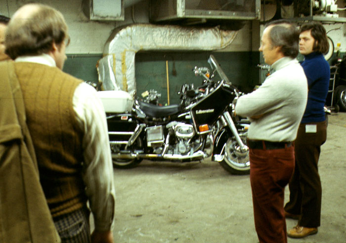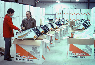| Dave Caruso accepts production for Harley-Davidson | Derek Rickman, visiting from England, and Tony Salsbury inspect shipments to Harley | ||||||||||||||||||||||||||||||||||||||||||||||||||||||||||||||||||