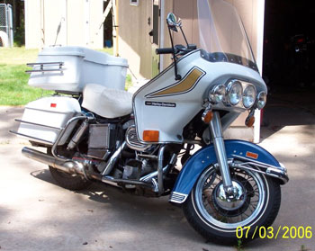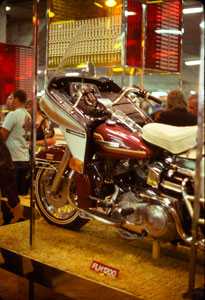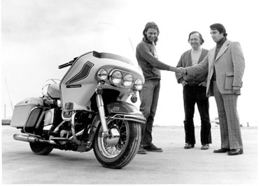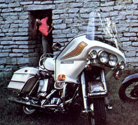 ![]() | Charly Perethian grins after his test drive on the first Liberator. We wanted this fairing to offer the most touring protection possible. After all, the FLH was the definitive cross - country cruiser of America, right? Inside were two enormous side storage compartments. Outside, the Liberator lit up like a Christmas tree. Elvis understood he would be noticed with his Liberator. | ||||||||||||||||||||||||||||||||||||||||||||||||||||||||||||||||||