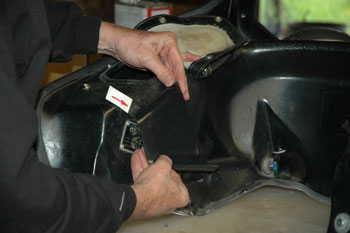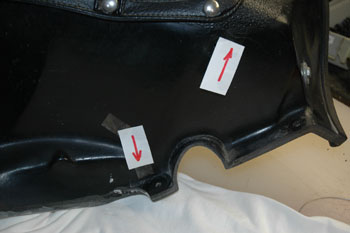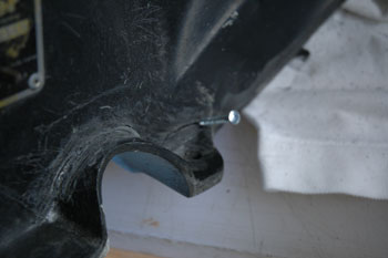 | Step Four: #45966 has cracks on both sides at the rear of the fairing, going thru the tonneau snap holes. I suspect that since both go thru the 1/8" hole we drilled for the snaps, the holes and stress from the stretched tonneau covers may be responsible. | |||||||||||||||||||||||||||||