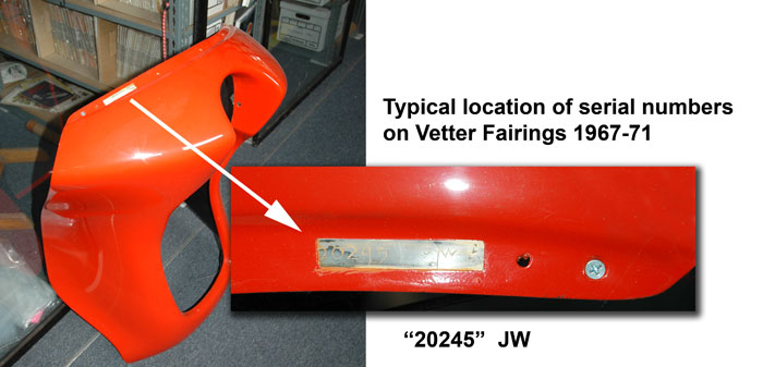 | You will find the serial numbers under the foam tape of these old fairings. We used the number to keep track of it as it was being made. Hidden under the foam tape makes it hard to find today. I still have the production records for these. If you send me pics and a number, I can usually tell you when and to who it was sold. | |||||||||||||||||||||||||||||||||||||||||||||||||||||||||||||