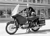 ![]() | One cold morning, on Sat. Feb 16, 1968, we rolled Dave's BMW out and took photos for our ads and press release. It fit perfectly... better than any other fairing I would ever make, because it was only for BMW. We were all very proud. Mike was happy because he had something people said they wanted. Notice that Dave's windshield has a straight bottom line. After making about twenty of these, I redesigned the S2000 to allow it to use our new "Gull" shaped windshield. It now became the S2500 Phantom Fairing. | ||||||||||||||||||||||||||||||||||||