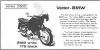| From the beginning, BMW owners were the most interested in Vetter fairings. Because of this, Mike Jones, my business manager of the time, insisted that I design a fairing for BMWs. Fotrunately, I had a friend, Dave Blaine, in Rantoul, where we were now located, who had a BMW and was willing to let me use it. | |||||||||||||||||||||||||||||||||||||