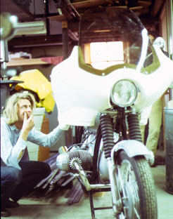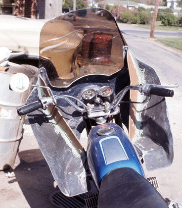 | The first Windjammer went onto my Kawasaki 500 From the beginning, I had planned to design an additional shell to bond into the inside which would give the new fairing great integrity. In the meantime, temporary bulkheads of Masonite made it strong enough to ride. Riding something new is the best part of being a motorcycle designer. | |||||||||||||||||||||||||||||||||||||||||||||||||