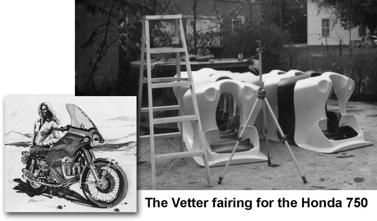 | My work was beginning to attract attention and things were beginning to happen quickly. We were running out of room in the Meathouse and had to begin working outside. Rows of Vetter Phantom fairings filled the parking lot. It was a good thing that we all rode motorcycles. The Vetter Phantom 4 was popular | ||||||||||||||||||||||||||||||||||||||||||||||||||||||||||||||||