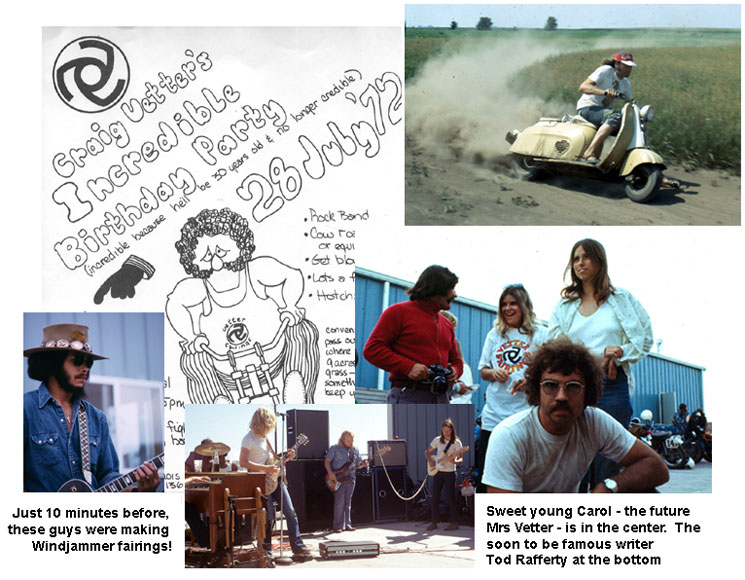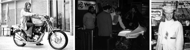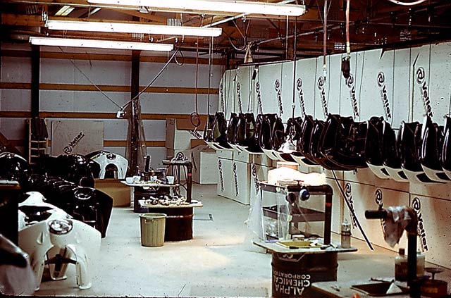 | After hours, most of the Fairingwrights stayed around. The Vetter shop was more fun than home. The shop was full of tools and I encouraged them to use them. Most worked on their bikes. Some raced. I put in a short track out back so we could practice. I lived in a trailer out behind the shop so I was there after hours, too. I knew everybody and they knew me. I knew their motorcycles, their girl friends and dogs. It was a great period in our lives. | ||||||||||||||||||||||||||||||||||||||