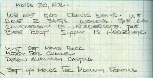| Feb 12, 1972: I saw the first Hurricane at Houston, Texas. We were showing the Windjammer at the Houston Trade Show. What a great weekend. | ||||||||||||||||||||||||||||||||||||||