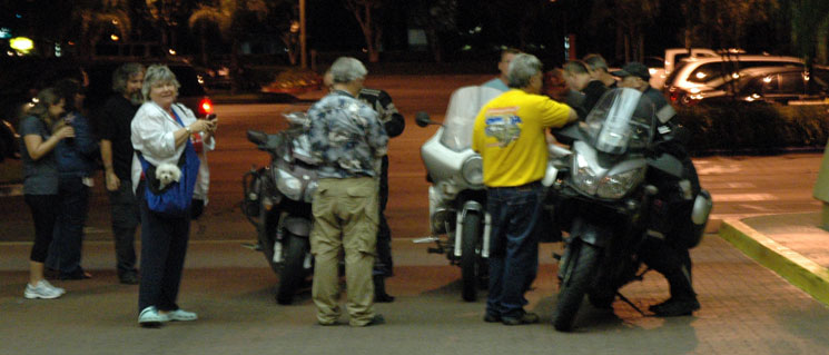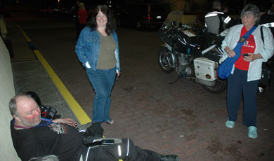 | They are welcoming the arriving Iron Butt Rally Riders, of course. One by one, exhausted riders straggle in. John had arrived! Sonia and Carol are so relieved. This has been hard on them, too. | ||||||||||||||||||||||||||||||||||||||||||||||||||||