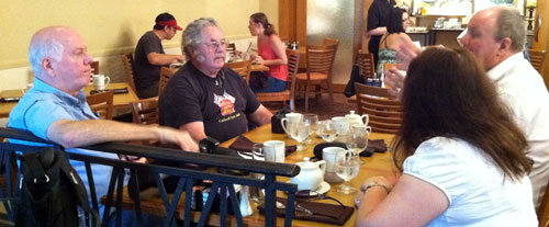 | July 1, 2011: After a restful one-hour sleep, John was ready for visitors. Don Emde and Rob North were among the first to stop by to congratulate him. | ||||||||||||||||||||||||||||||||||||||||||||||||||||