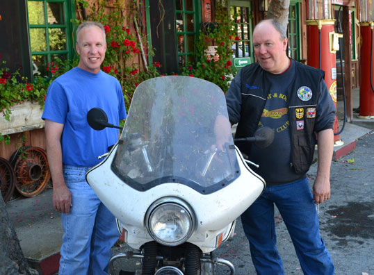 | The extra-ordinarily generous James Phillips donated this 1974 Windjammer III, serial number 09-119311, from his collection of Vetter fairings. John simply could not find a Windjammer in the UK. Notice the opaque windshield. It started out clear but got this way between Kayenta and Flagstaff, AZ in some of the worst sand storms people could remember. John will be shipping his Iron Butt Rally bike home to England where it will be parked and retired alongside his other Triumph Triples. He wants to leave it "as it was" in the USA. | ||||||||||||||||||||||||||||||||||||||||||||||||||||